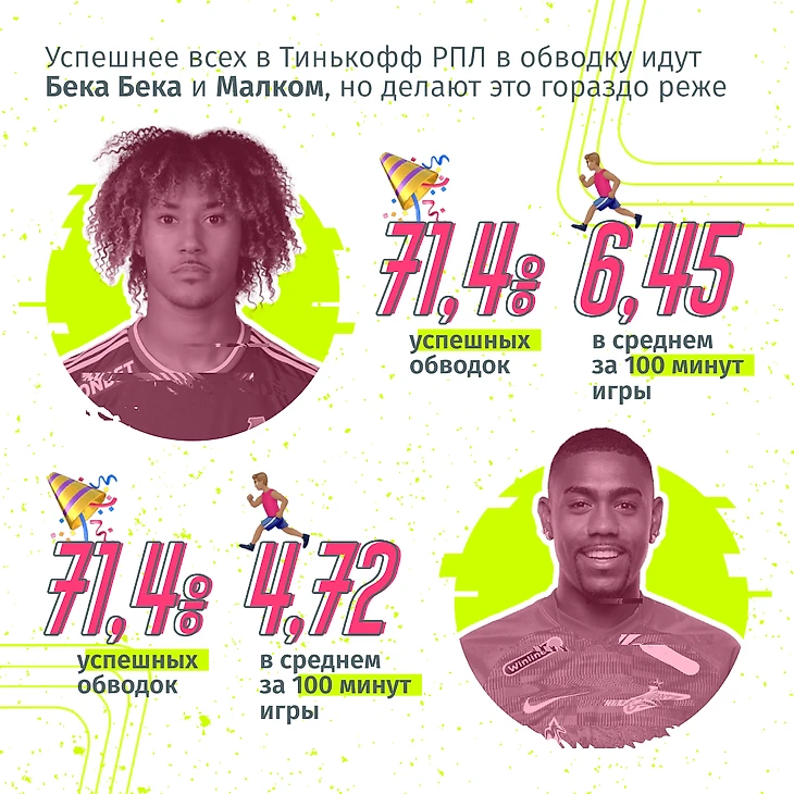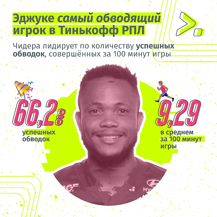 Чидера Эджуке сейчас в топе самых крутых дриблеров мира (согласен неожиданно), что уж говорить про Тинькофф РПЛ. Если интересно, сделаю подробный пост с цифрами на эту тему.