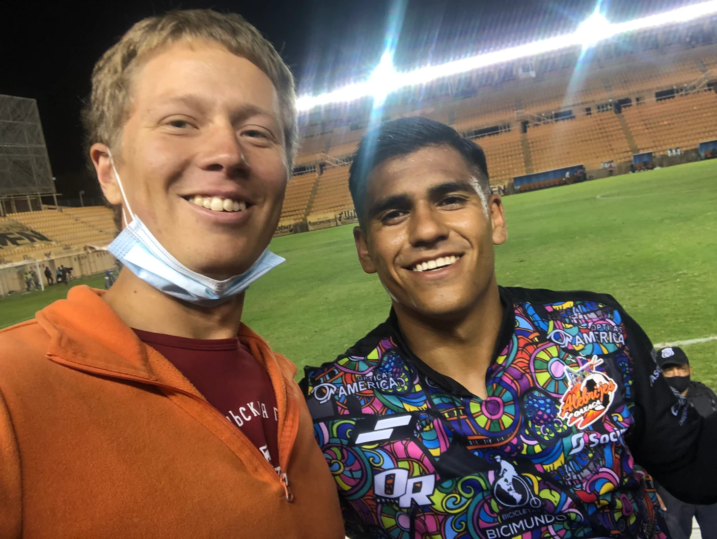 После игры трое игроков «Алебрихес» подошли к трибунам, чтобы болельщики могли сфотографироваться с ними. Я тоже сфотографировался и наудачу спросил: «Я приехал на игру из России, могли бы подарить свою футболку?»