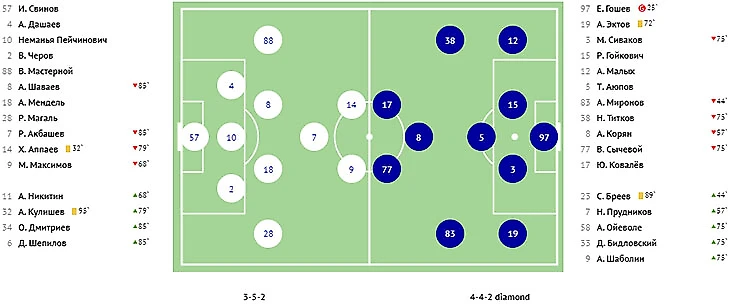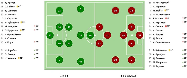 Голы: 1:0 Казаев (22), 2:0 Лазарев (73 с пенальти).