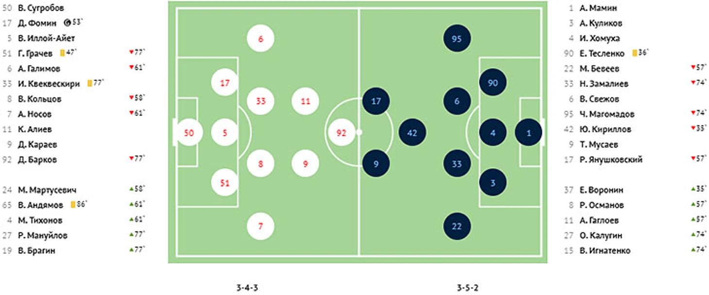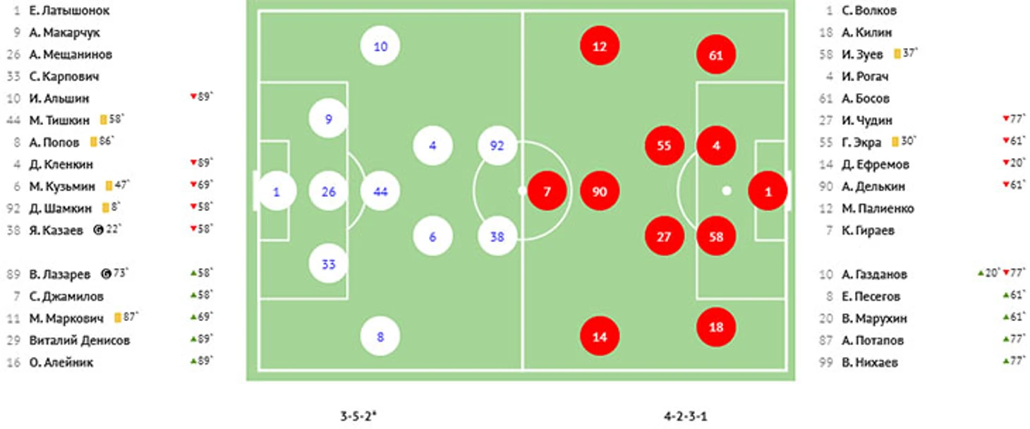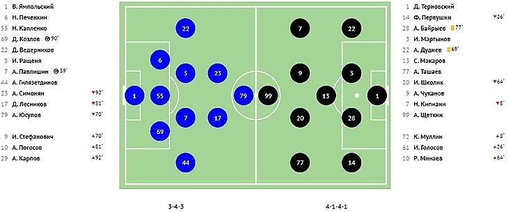 Голы: 0:1 Хубаев (27), 1:1 Завезён (33), 1:2 Юшин (44).