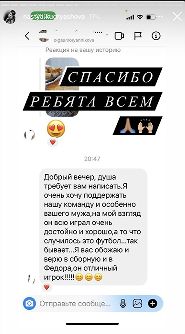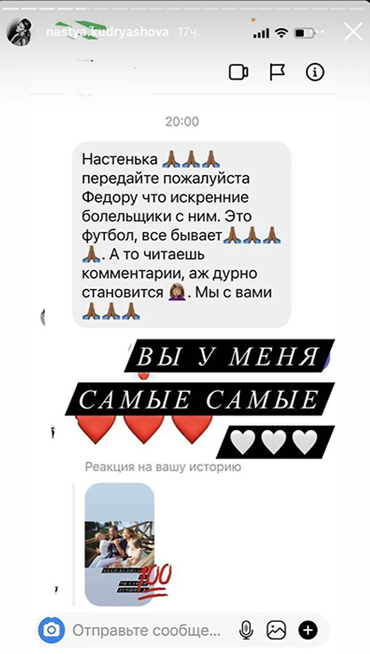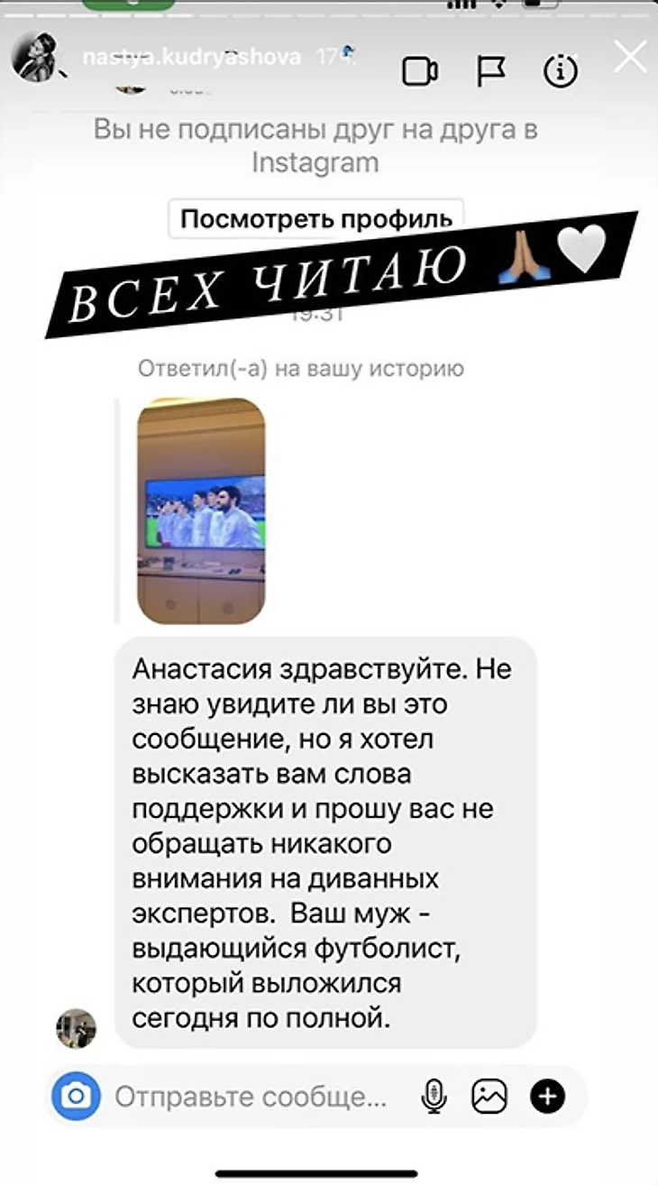 Впрочем, были и относительно вежливые недовольные. Один из фанов написал жене игрока Анастасии – потребовал вернуть деньги за неудачную ставку.