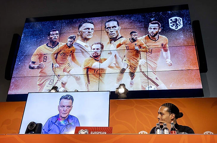 На пресс-конференцию ван Гал прийти не смог – он был в кресле-каталке, поэтому не прошел в дверь зала, где эту пресс-конференцию должен был давать. Вот как это выглядело (ван Дейк посмеялся вместе с журналистами, когда тренер начал объяснять свое присутствие в таком формате).