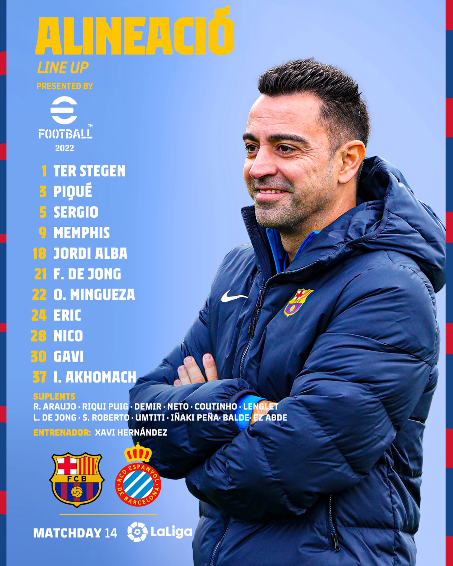 В первом матче Хави по возвращении ФКБ на поле выйдут сразу 8 воспитанников «Ла Масии», среди которых особенно ярко появление Илиаса Ахомача, 17-летнего каталонца, способного сыграть в любой зоне нападения. Что интересно, при двух предыдущих «специалистах», по недоразумению руководивших «Барсой» (второму по блату доверили «Барсу Б») Ахомач даже в заявку первой команды не попадал. При тех двух недоразумениях, скорее всего, и играли бы абде-демиры, вопреки здравому смыслу находящиеся в системе ФКБ.