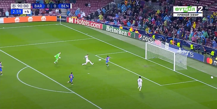 Каталонцы пошли вперед большими силами и прозевали контратаку «Бенфики». Выход два в одного...