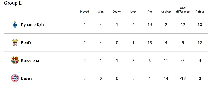 До конца группового турнира остался ещё один тур, но он, окромя борьбы за первую строчку, иной интриги не несёт. «Динамо Киев» и «Бенфика» вышли в плей-офф досрочно, а «Барселона» и «Бавария» уже утратили даже математические шансы на выход из группы. Мюнхенцы вообще умудрились проиграть все 5 матчей с общей разницей голов —13.
