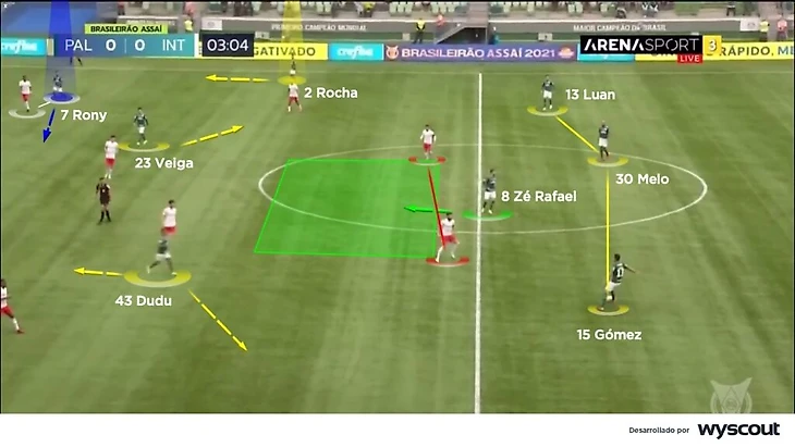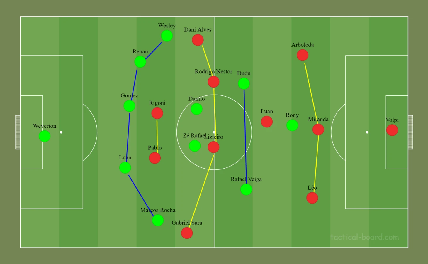 В центре опытная связка Густаво Гомес-Луан. Второй игрок-ключевой в построениях Феррейры за счет прекрасного длинного паса разгоняет вертикальный футбол зеленых как никто другой.