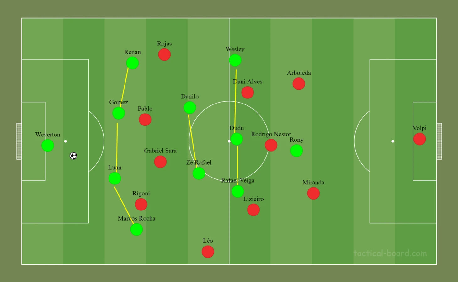 Активное использование флангов с опускающимся Арао на линию загейро, образующее букву V конечно веселит новомодных аналитиков, не могущих классифицировать этот футбол, но не стоит забывать, что Гаушо самый эффективный тренер последней пятилетки в Бразилии.