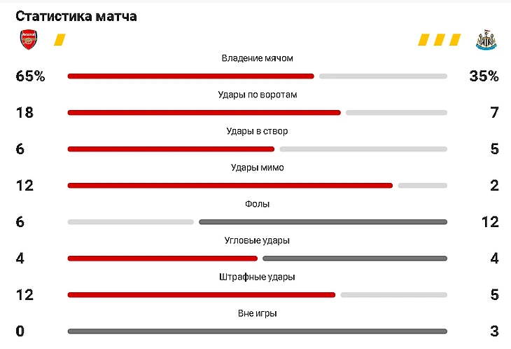 Матч против "Ньюкасла" не стал чем-то сложным для команды Артеты. Это подтверждает и статистика, и слова главного тренера.