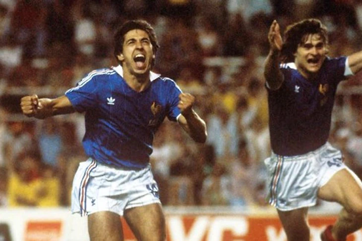 Классический вариант знаменитого la Сarré Magique в составе Платини, Тигана, Жиресса и Фернандеса, оформившийся в 1984