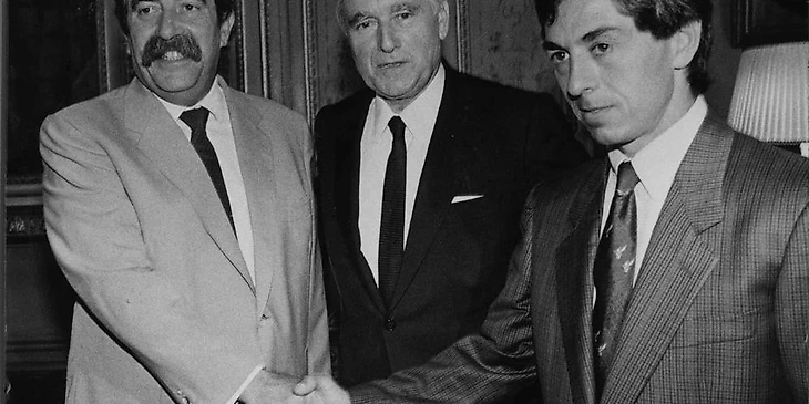 Клода Беза можно было обвинять в чем угодно, но только не в равнодушии к любимому клубу ( здесь он в стильном гасконском берете на стадионе "Металлург" в Кривом Роге 20 марта 1985 на матче Днепр-Бордо): уход Жиресса в Марсель он воспримет не иначе как предательство сыном своего родного отца...