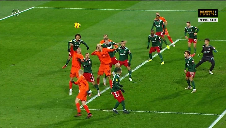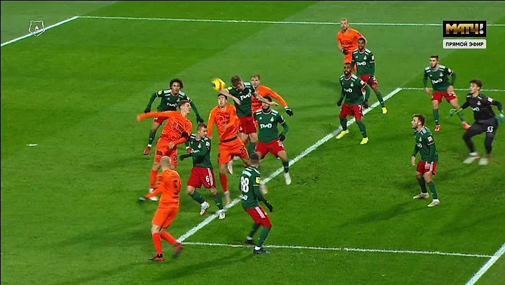 Во-вторых, Едвай даже с физическим давлением не выиграл позицию, поэтому летящий мяч встретил не головой, а все тем же локтем. Невразумительная игра рукой, которая тоже тянет на свисток судьи.