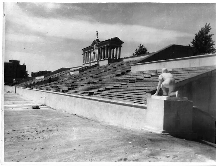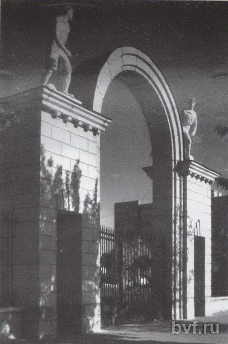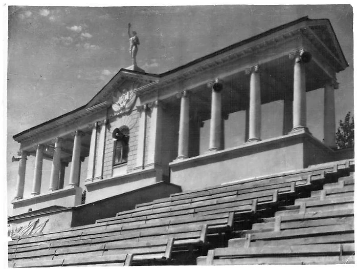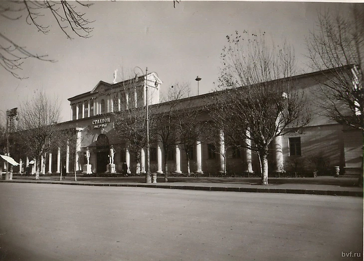 Первый стадион 1934 года был довольно типичным для того времени: в стиле Сталинского ампира - он же «стиль триумф», что более красноречиво характеризует его формы. Главная отличительная особенность того стадиона – колоннада на центральной трибуне. К слову, такие «типовики» 1930-х годов вызывают трепет у большинства граундхопперов, а также у ценителей архитектуры и истории. До наших дней стадионные колоннады сохранились лишь в штучном экземпляре – навскидку из действующих арен могу вспомнить только стадионы в Волжском и Первоуральске. Также, как тогда было заведено, территория комплекса была украшена скульптурами спортсменов и рабочих.