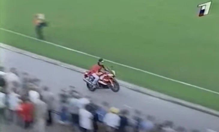 Тогда же в 2001 году, снова в матче со Спартаком, произошел несчастный случай. В перерыве было запланировано байк-шоу. Один из байкеров слишком сильно разогнался, по дороге задел кабель на асфальте и врезался в толпу людей. Из-за тяжелой черепно-мозговой травмы погибла медик Центрального стадиона, в тяжелом состоянии в больницу была доставлена заведующая хозяйственной частью арены, тяжелые травмы получил милиционер, сам байкер тоже сильно пострадал. В момент происшествия его серьезность не была достаточно оценена и матч был доигран.