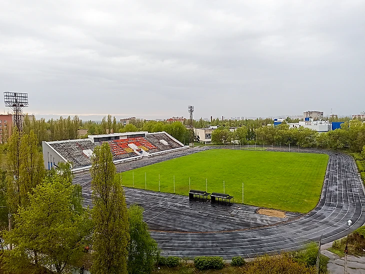 Ещё одной интересной архитектурной доминантой того времени была расположенная рядом водонапорная Шуховская башня на 1000 ведер. Во время ВОВ она была разрушена, как и сам стадион.