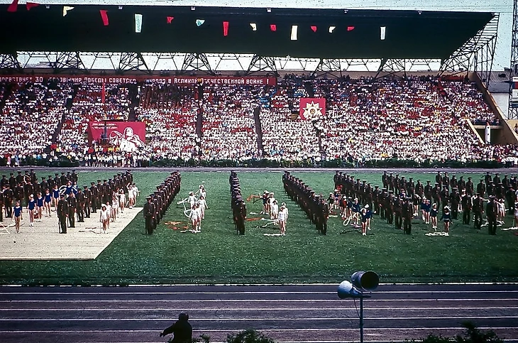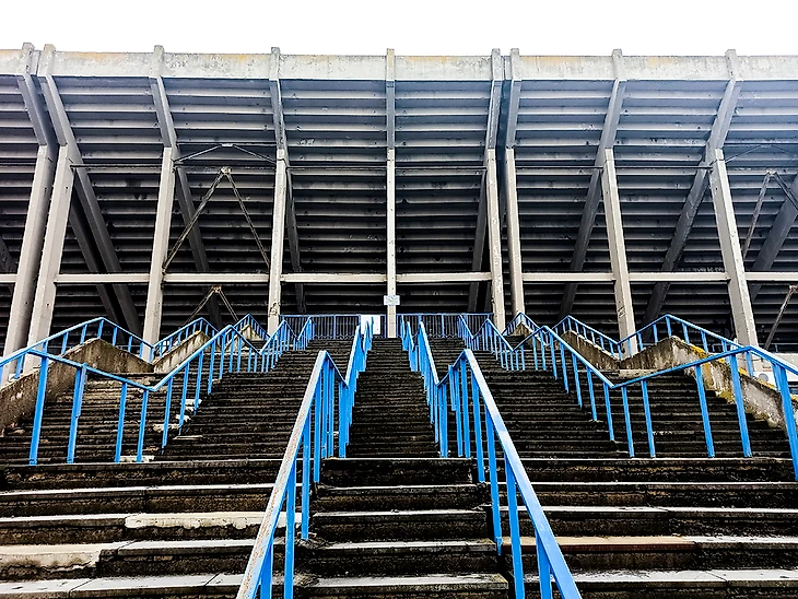 Несмотря на все впечатления полученные на матче, главная встреча со стадионом ждала меня на следующий день. В День Победы, 9 мая. С утра я решил прогуляться вокруг ЦСП уже в спокойной обстановке, без матча. Я осмотрел рынок, прогулялся по широкой лестнице Восточной трибуны, обогнул стадиона с юга, где находится домашний фанатский сектор.