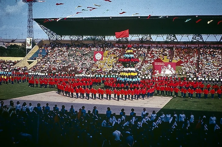 В 1962-1965 годы Труд снова реконструирован, расширен и стал вмещать уже 32 тыс. болельщиков. Местные жители с особой теплотой вспоминают о том стадионе, с навесом над центральными трибунами (колоннаду убрали во время реконструкции), желтыми стенами и воротами с буквой «П», фонтанчиками и все теми же кустарниками вдоль беговых дорожек.