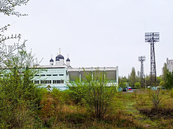 Но и там не все так просто: на Факеле тоже идет реконструкция. Вернее стоит. Стадион просто закрыт. Туда я тоже доехал и осмотрел его из-за забора. (В репортаже описано положение дел на май 2021 года, осень начался снос трибун).