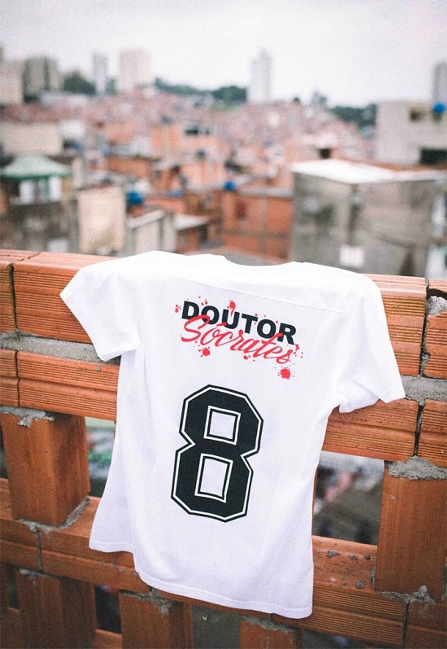Шрифт надписи на спине напрямую отсылает к логотипу Коринтианской демократии – это такой период в истории «Коринтианса» с 1982 по 1984 год, когда все важные социальные вопросы (прием на работу, распределение доходов, свобода выражения политических взглядов и так далее) решались равноправным голосованием. Голос массажиста или физиотерапевта равнялся голосу звездного игрока или представителя администрации клуба.