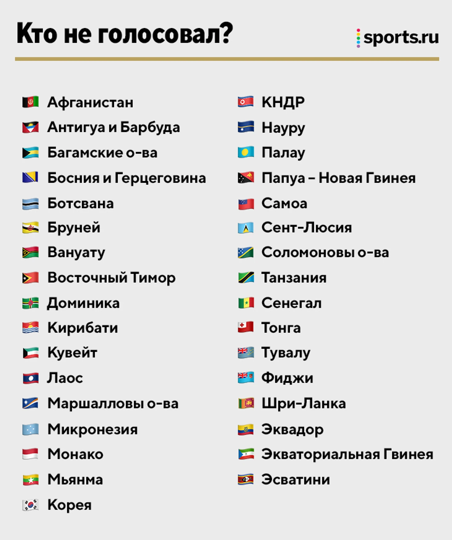 Кстати, в голосовании участвуют не все страны, а только те, с кем договорился France Football. И их число уменьшается. В этом году участвовали представители 170 стран, в 2019-м и 2018-м – 176 стран.