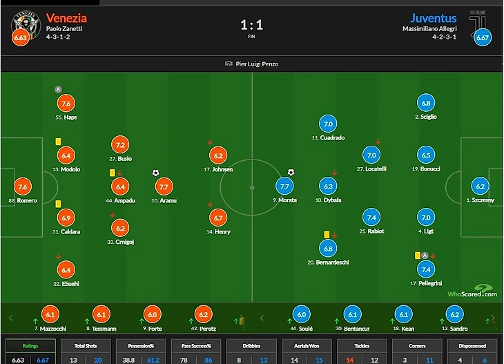 Мората лучший. Оценки «Ювентуса» за матч с «Венецией»