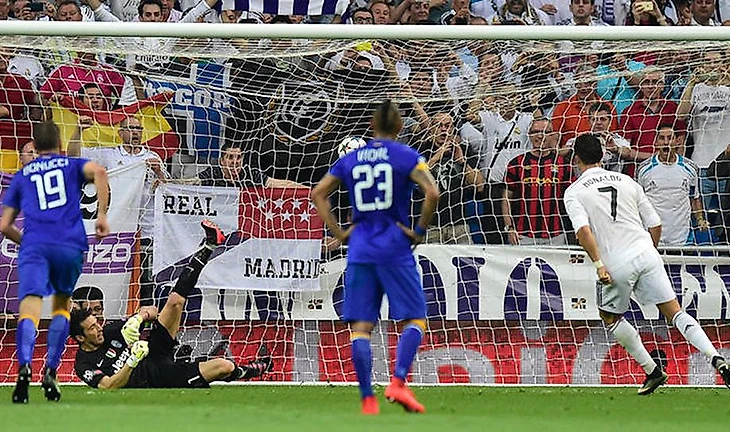 В послематчевой серии пенальти Реал забил 4 из 4-х своих ударов, а Хуанфран попал в штангу. 5-й удар наносил Криштиану. Это момент максимального давления, но для Роналду это не важно.