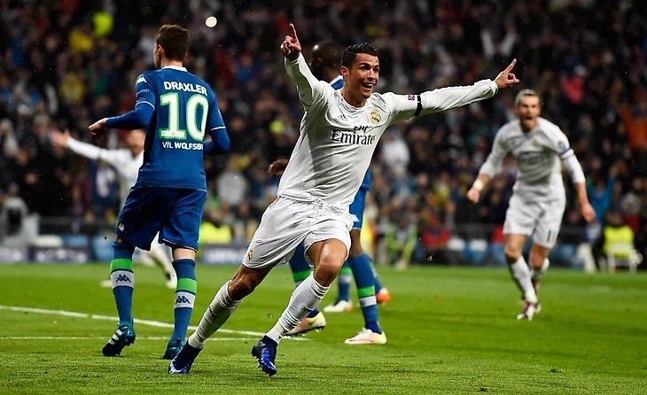 На Сантьяго Бернабеу Роналду забил 2 достаточно быстрых гола – на 15-й и 17-й минутах. Это дало команде психологическое превосходство. Вольфсбург сел в оборону и сдерживал звездных игроков атаки Реала до 77-й минуты, когда Роналду забил третий мяч, что символично, со штрафного.