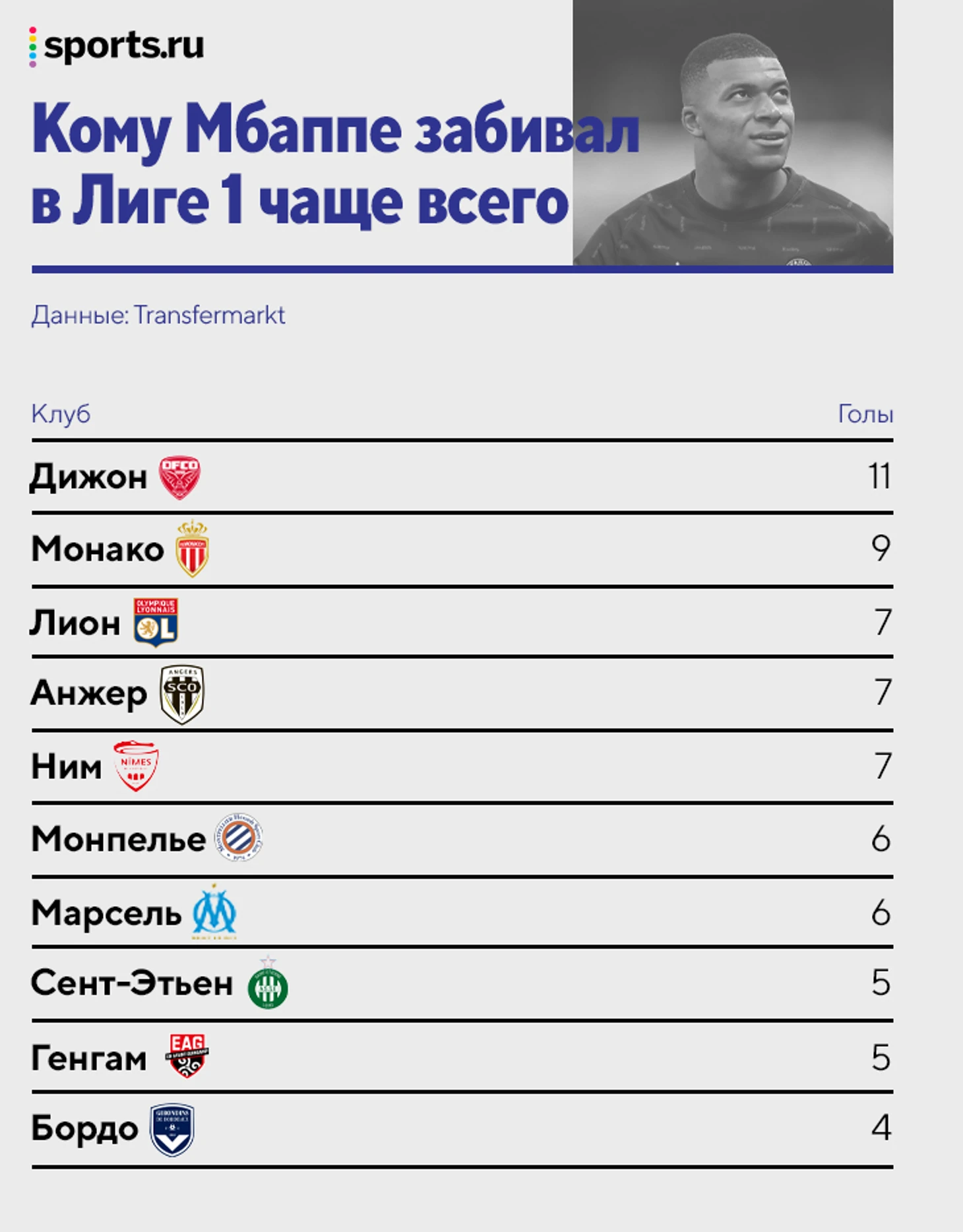 • Вы удивитесь, в чьи ворота Мбаппе оформил хет-трики и покер. Четыре получил «Лион», по три – «Генгам» и «Монако».