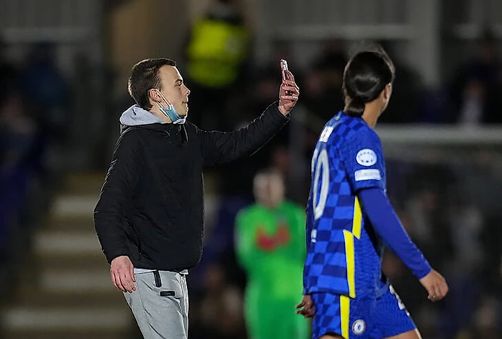 Форвард «Челси» вырубила выбежавшего фаната. Ей дали желтую, а его даже не оштрафовали – у женских матчей нет официального статуса