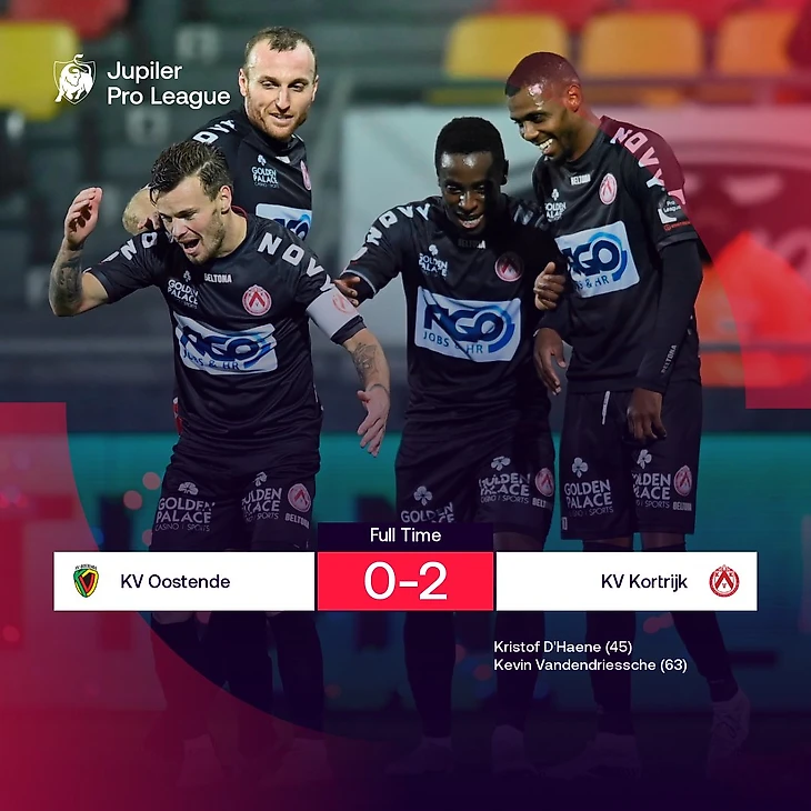 3. Это уже третья победа «Кортрейка» над «Остенде» в этом сезоне. Первая была в домашнем матче первого круга, а вторая – в 1/8 финала Кубка Бельгии. В этих трех матчах «Остенде» не забил ни разу.