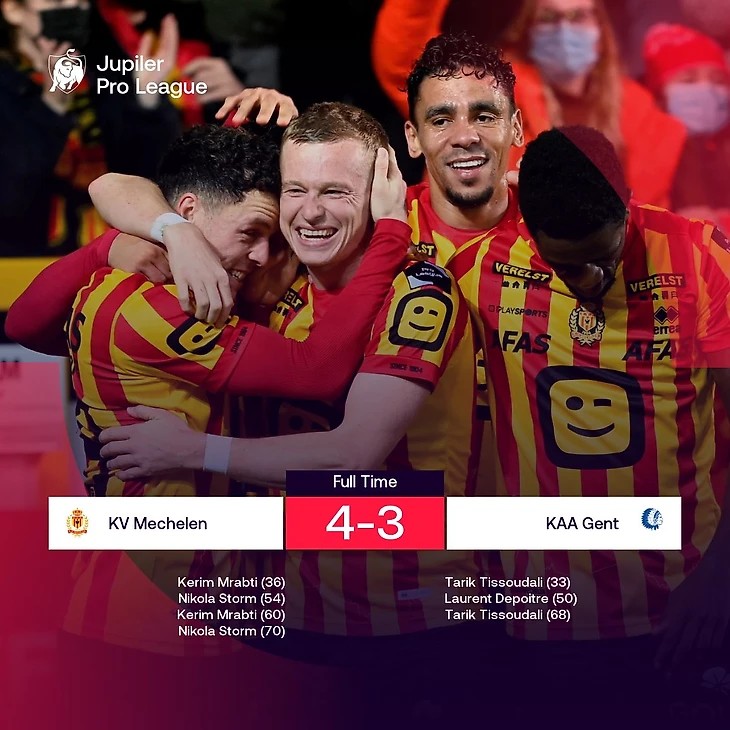 «Мехелен» и «Гент» устроили перестрелку (4:3), а обе команды из Брюгге и «Андерлехт» выиграли в четвертом туре подряд
