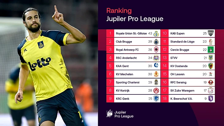 Турнирная таблица чемпионата Бельгии по итогам 19-го тура