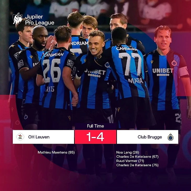 Ничто не предвещало такой крупной победы «Брюгге». «Левен» лучше провел начало и конец первого тайма, а также заключительный отрезок матча, чаще владел мячом и незначительно уступил по количеству ударов. Но именно «Брюгге» открыл счет, а вскоре после этого Хендри попал в перекладину. Перед самым перерывом Ланг коленом попал по голове Рунарссону – вратаря с рассечением лба доставили в больницу, а вместо него вышел Ромо, не игравший в последних трех турах. Во втором тайме «Левен» развалился и пропустил трижды за восемь минут, но в итоге все же не проиграл всухую. «Брюгге» одержал четвертую победу подряд и остается единственной командой, которая забивала хотя бы раз в каждом туре этого сезона. «В начале матча было тяжело выходить из-под прессинга, но через 15-20 минут мы внесли необходимые коррективы и забили гол, а после перерыва уже доминировали. Такая крупная победа радует, но было бы намного приятнее, если бы мы все-таки снова сыграли на ноль», – говорит главный тренер «Брюгге» Филипп Клеман.