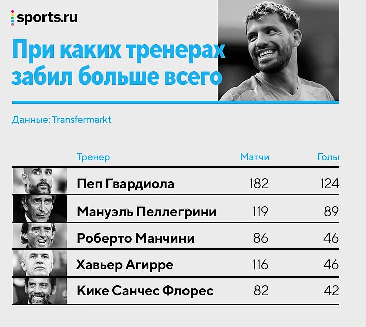 Больше всего Агуэро забил у Гвардиолы, но при Пеллегрини был эффективнее.