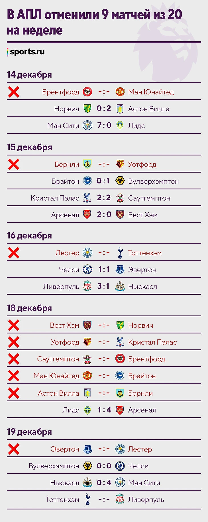 [Отказ АПЛ в переносе] очень сложно понять, мы заботимся о здоровье игроков. В итоге мы получаем футболистов, которые играют после травм. Мы рискуем. Я обеспокоен с медицинской точки зрения, у нас четыре дня подряд положительные тесты. Как это прекратится, если мы вместе едем в автобусе и участвуем во встречах? Мы разочарованы и немного рассержены», – злился тренер.