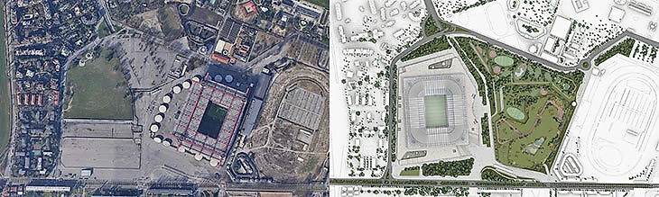 Город получит не только стадион, но и полностью пешеходный район со 110 тысячами квадратных метров, 40% которого составит парковая зеленая зона. Парковка, которая сейчас занимает 27% от общей площади, будет перенесена на специально отведенную подземную территорию.