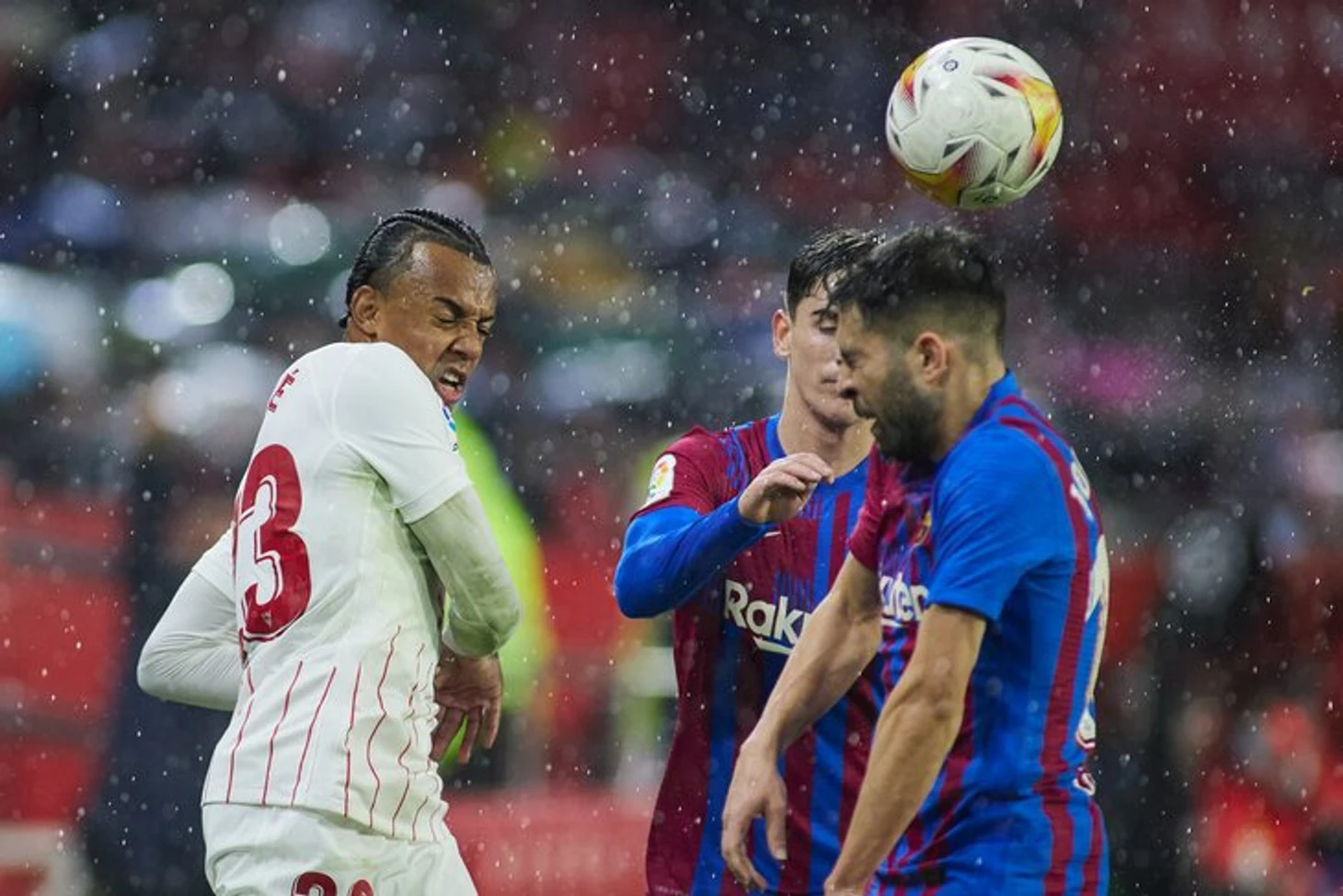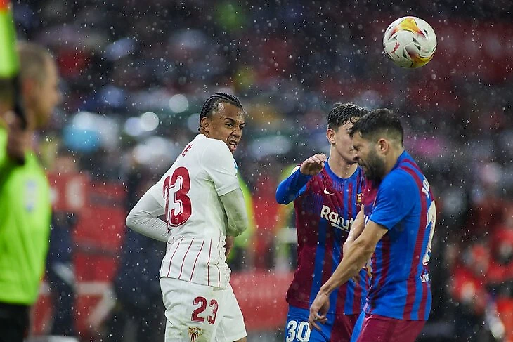Кунде из «Севильи» перемкнуло: завелся из-за тычков Альбы – и швырнул мяч в лицо Жорди. Ауч