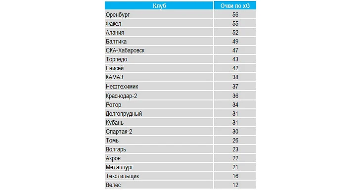 «Оренбург» - лидер, «Торпедо» - шестое, «Велес» - абсолютный аутсайдер. Альтернативная таблица ФНЛ