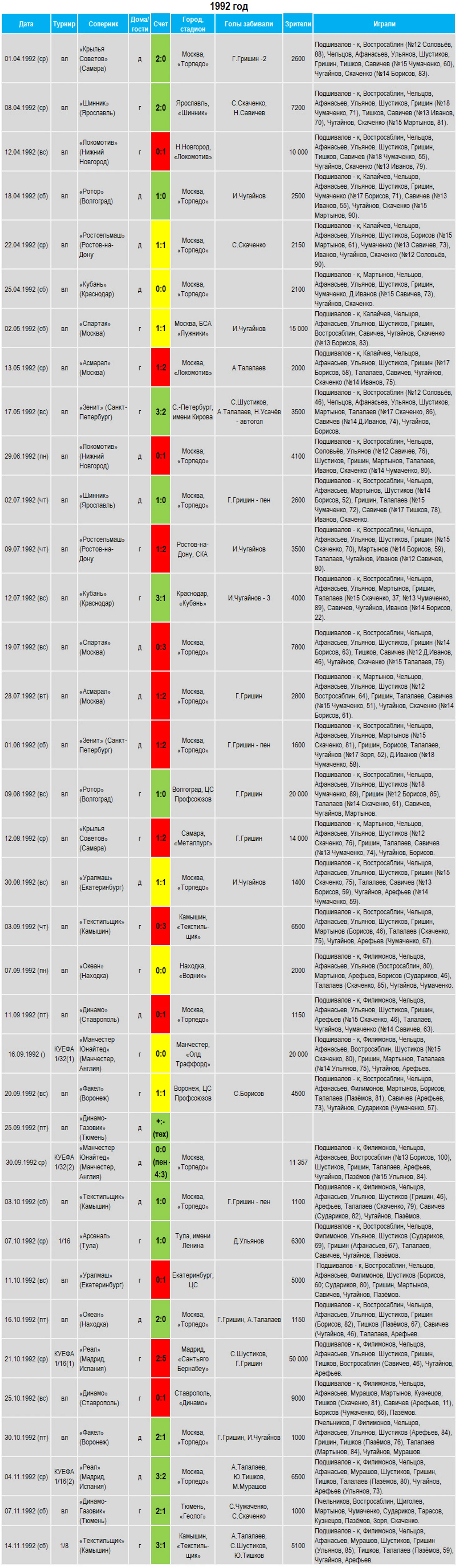 «Торпедо». 30 лет в российском футболе! Сезон 1992 года, дебют