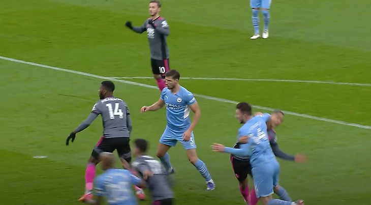 В домашнем матче против «Лестера» команда Гвардиолы получила весьма редкий для АПЛ пенальти. Во время подачи углового полузащитник «лис» Юри Тилеманс придержал Эмерика Ляпорта, который в итоге решил упасть. Судья Крис Кавана воспользовался ВАР и поставил на точку, хотя на повторе видно, что предпосылок для падения у игрока сборной Испании и вовсе не было.