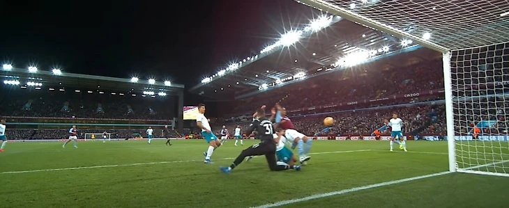 В концовке выездного матча против «Астон Виллы» при счете 1:2 в пользу «Сити» у ворот Эдерсона возник опасный момент с участием защитника хозяев Эзри Консы. Игрок откликнулся на прострел с левого фланга и был сбит Рубеном Диашем при попытке завершить атаку. Португалец ударил Консу по икроножной мышце, что четко видно на фотографии ниже. Несмотря на многочисленные претензии игроков «Астон Виллы», судья Майк Дин не стал даже смотреть повтор. В итоге «Сити» удержал счет и забрал 3 очка.