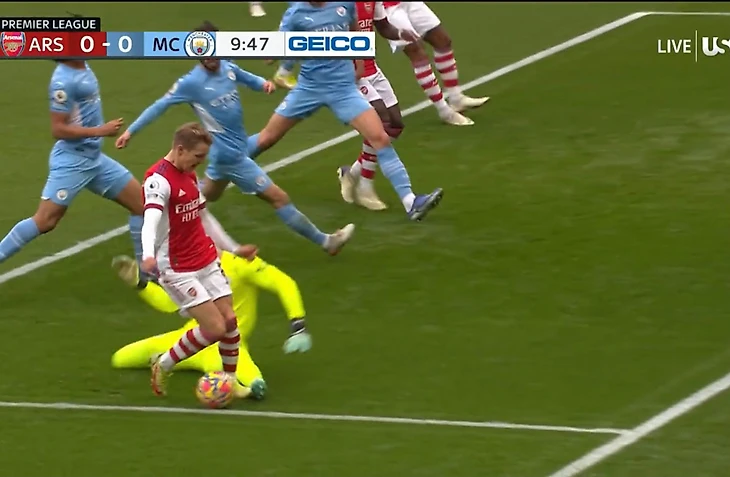 Хотя Одегард скорее наступил на ногу Эдерсона, чем Эдерсон его сбивал, но ок такие пенальти бывают.