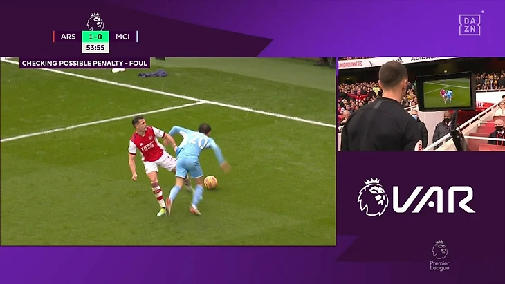 2) А вот во втором тайме Атуэлл все же назначил пенальти после просмотра ВАР, хотя эпизод был весьма сомнительным. На повторе видно, что Бернарду Силва стал заваливаться еще до того, как Джака слегка прихватил его за футболку, но для арбитра этого оказалось достаточно, чтобы указать на точку.