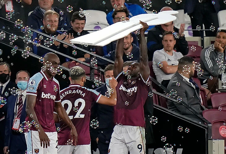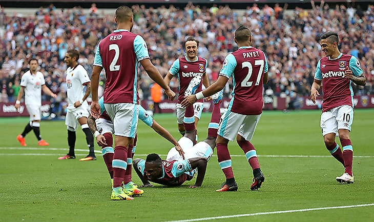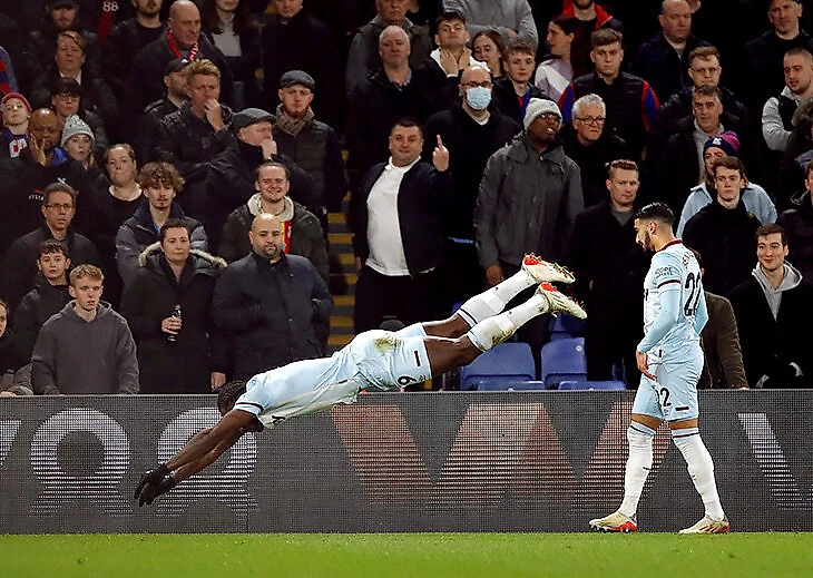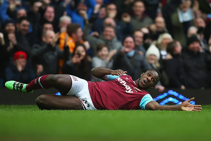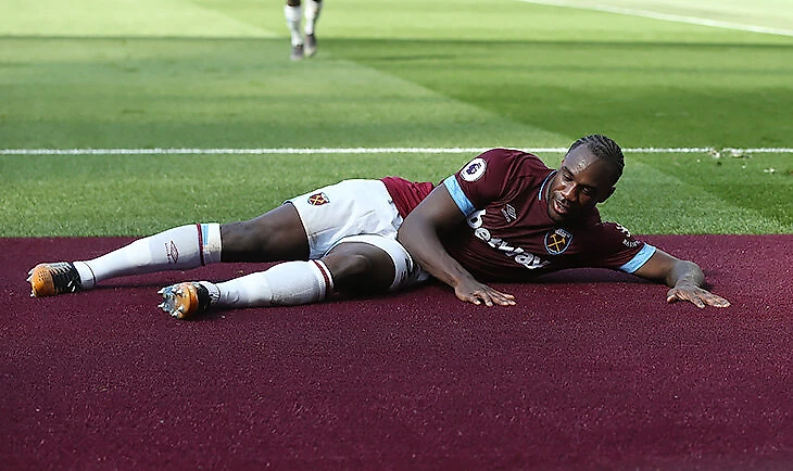 В субботу «Вест Хэм» в зрелищной перестрелке победил «Кристал Пэлас» – 3:2. Счет открыл лучший бомбардир «ВХ» Микаил Антонио. После гола нападающий подбежал к трибунам и исполнил грациозный прыжок, который был похож на нырок.