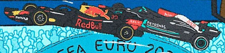 • Над итальянскими футболистами изображен баттл Хэмилтона и Ферстаппена в финальной гонке сезона. В мегаразвязке победил голландец, он нвый чемпион мира!