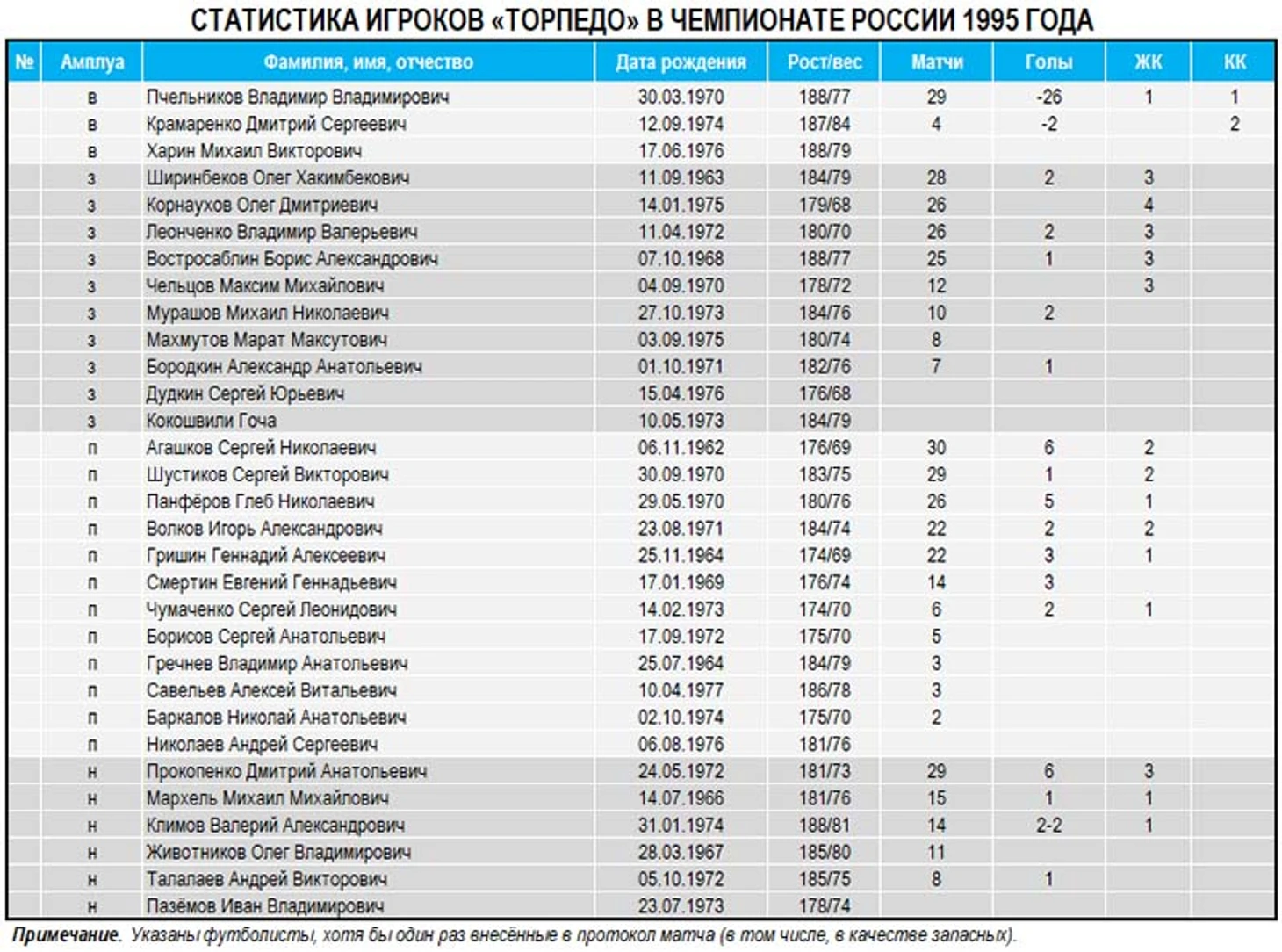 «Торпедо». 30 лет в российском футболе! 1995 год, возвращение в первую пятёрку