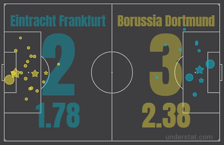 Игра завершилась со счётом 2:3 в пользу гостей. «Боруссия» все ещё имеет шансы на долгожданную салатницу, а «Айнтрахт» спускается на седьмое место и пока остаётся вне еврокубковой зоны.