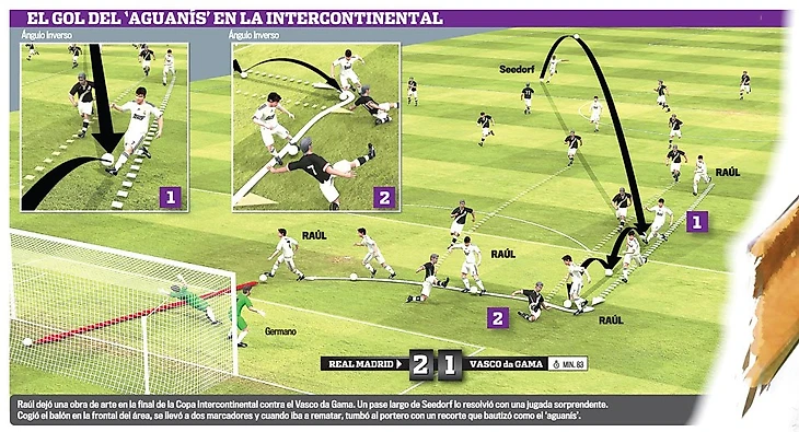 «Рауль увидел возможность на десять секунд раньше всех. Когда Зеедорф перехватил мяч в центре поля, Рауль побежал перпендикулярно воротам бразильцев. Было два варианта: увидел ли его партнер или нет. К счастью, голландец его увидел. Он отдал дальний пас, а все остальное сделал Рауль. Контролируя мяч левой, он на дриблинге убрал двух защитников и голкипера. Мяч оказался справа, под нерабочей ногой, но ворота были уже пусты. Раулю нужно было только попасть и бежать праздновать гол, который принес победу в Межконтинентальном кубке».