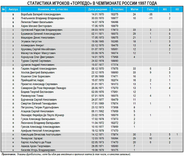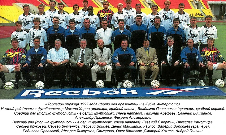 Как мы уже говорили, в июле 1996 года «Торпедо», расставшись с ЗИЛом и переехав на БСА «Лужники», сменило владельца. В начале же следующего сезона «автозаводцы», воспользовавшись расколом в ЦСКА, произвели глобальные перестановки в своих рядах. Внушительная часть «армейских» футболистов вместе со своим тренером Александром Фёдоровичем Тархановым, не найдя общего языка с руководством красно-синих, стала выступать под флагом «Торпедо», а некоторые игроки чёрно-белых в качестве компенсации проделали обратный путь из «Торпедо» в ЦСКА.