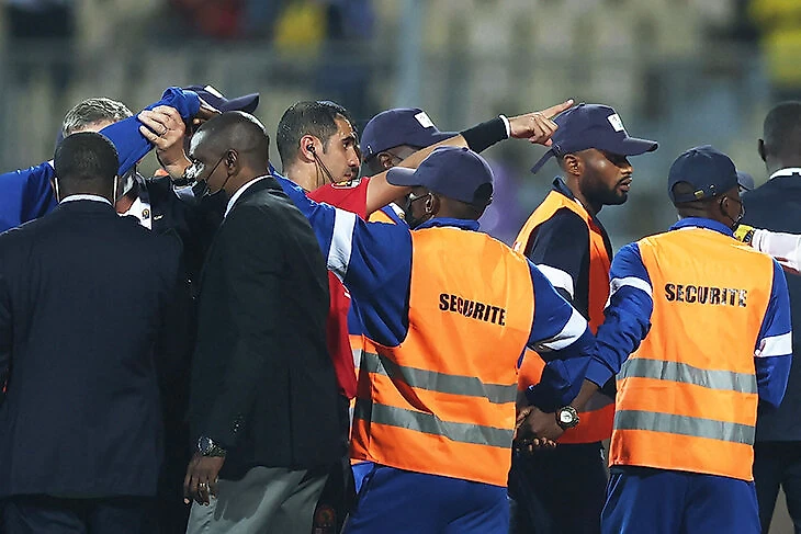 Уже после финального свистка на поле вспыхнула потасовка, в которой ганский форвард Бенджамин Тетте ударил Аарона Бупендза по лицу.