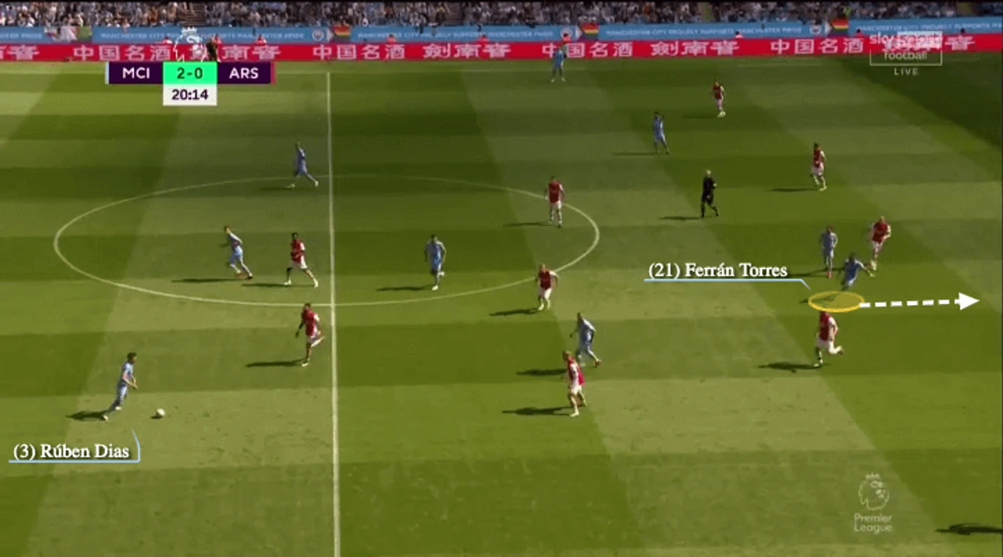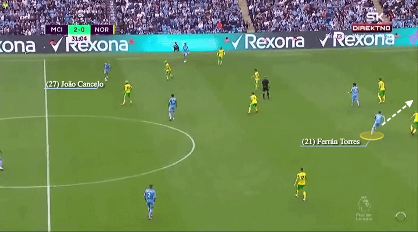 Торрес и Стерлинг получали такие задания, которые мог бы получать, например, чистый нападающий Эрлинг Холланд. То, что нам сложно воспринимать их как центрфорвардов не означает, что они автоматически становятся ложными девятками. Хотя иногда в их функционал будут входить и приемы ложных девяток.